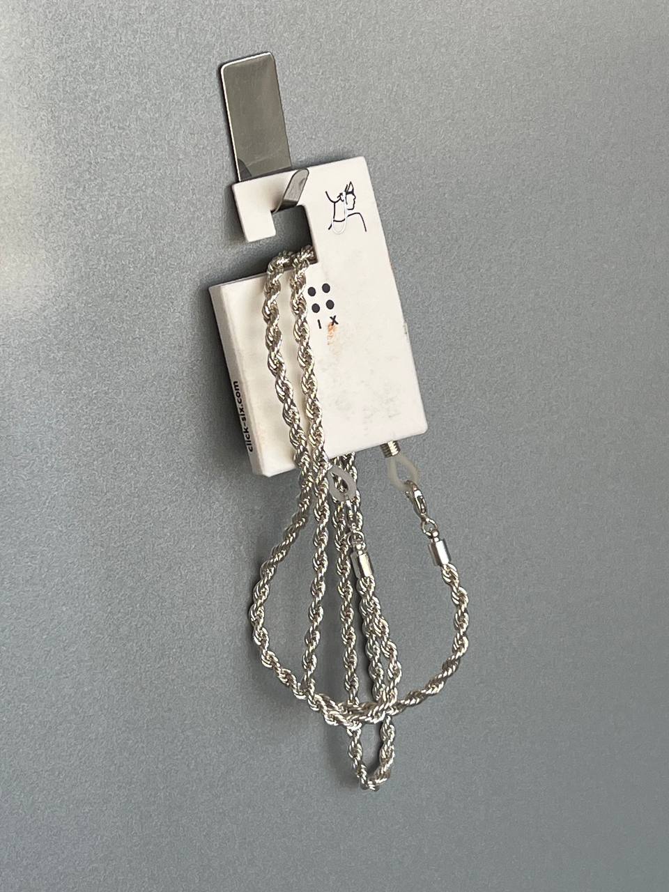 این بند عینک فلزی نقره ای از یک زنجیر با بافت پیچخورده به رنگ نقرهای ساخته شده است که به آن جلوهای خاص و متفاوت میدهد. این بافت که شبیه به بافت زنجیرهای طنابی است، درخشش زیبایی دارد و به استایل شما یک حالت لوکس و مینیمال میبخشد. این بند عینک نه تنها یک اکسسوری کاربردی برای نگهداری از عینک است، بلکه به عنوان یک گردنبند زیبا و ظریف نیز قابل استفاده است. 💖
