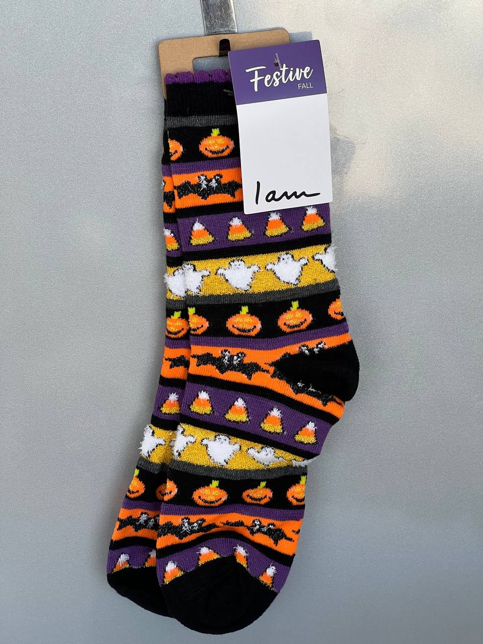 این جورابهای ساقدار زنانه از مجموعه “Festive Fall” (جشن پاییز) برند “I am” با طراحی شلوغ، رنگارنگ و دوستداشتنی، برای استقبال از جشن هالووین و روزهای سرد پاییزی آماده شدهاند. طرح این جورابها به صورت راهراه افقی و متناوب با نوارهایی از رنگهای نمادین پاییز و هالووین است: مشکی، بنفش تیره، نارنجی کدو حلوایی، و زرد خردلی.