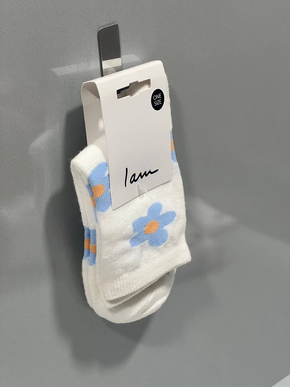 • طراحی شاد و کودکانه: طرح گل‌های آبی پاستلی با مرکز نارنجی روی زمینه سفید، ظاهری بسیار دوست‌داشتنی و شاداب به جوراب‌ها بخشیده است.