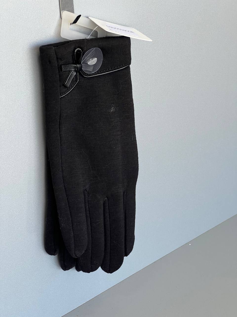 مهمترین ویژگی این دستکشها، طراحی مینیمال و در عین حال چشمنواز آنها است. یکی از آنها دارای نوار باریک از جنس چرم مصنوعی براق، در قسمت مچ دست قرار گرفته که با یک پاپیون کوچک و ظریف از همان جنس تزئین شده است. این پاپیون، نقطهی کانونی جذاب و زنانهای به دستکش اضافه کرده و آن را از یک دستکش ساده به یک اکسسوری شیک تبدیل میکند. همچنین، یک دکمهی کوچک و شفاف بالای پاپیون، به عنوان جزئیاتی دیگر، زیبایی دستکش را تکمیل میکند. این ترکیب چرم مصنوعی و پارچه، تضاد زیبایی ایجاد کرده که استایل دستکش را خاص و متمایز میکند.
