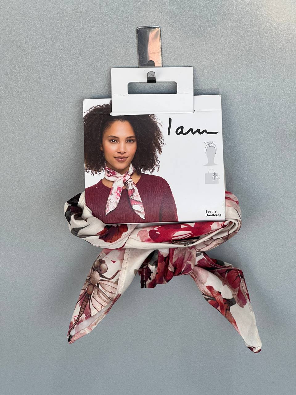 این محصول یک روسری دستمال سر است که با طرحهای هنری و رنگهای گرم، یک اکسسوری خیرهکننده و مجلسی به شمار میرود. طرح روی این دستمال، ترکیبی از گلهای انتزاعی به رنگهای قرمز تیره، صورتی و سفید است که به صورت هنرمندانه روی زمینه کرم قرار گرفتهاند. این دستمال با ظاهر شیک و مجلل خود، به راحتی میتواند استایلهای مختلف را از ساده به فوقالعاده تغییر دهد.