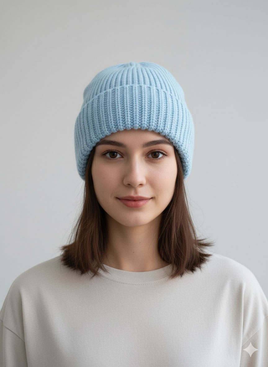 کلاه بافتنی بینی (Beanie) آبی آسمانی