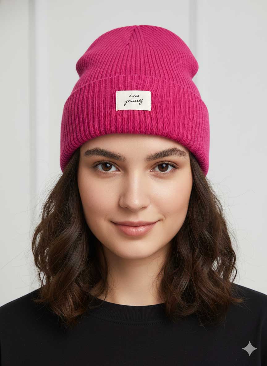 رنگ اصلی کلاه، فوشیا (Fuchsia) یا سرخابی تند است؛ یک رنگ فوق‌العاده شاداب، زنده و پرقدرت که تضاد زیبایی با روزهای سرد و غالباً خاکستری زمستان ایجاد می‌کند. این رنگ، نماد شجاعت، انرژی و اعتماد به نفس است و استفاده از آن نشان‌دهنده جسارت شما در انتخاب‌های مد و فشن است.