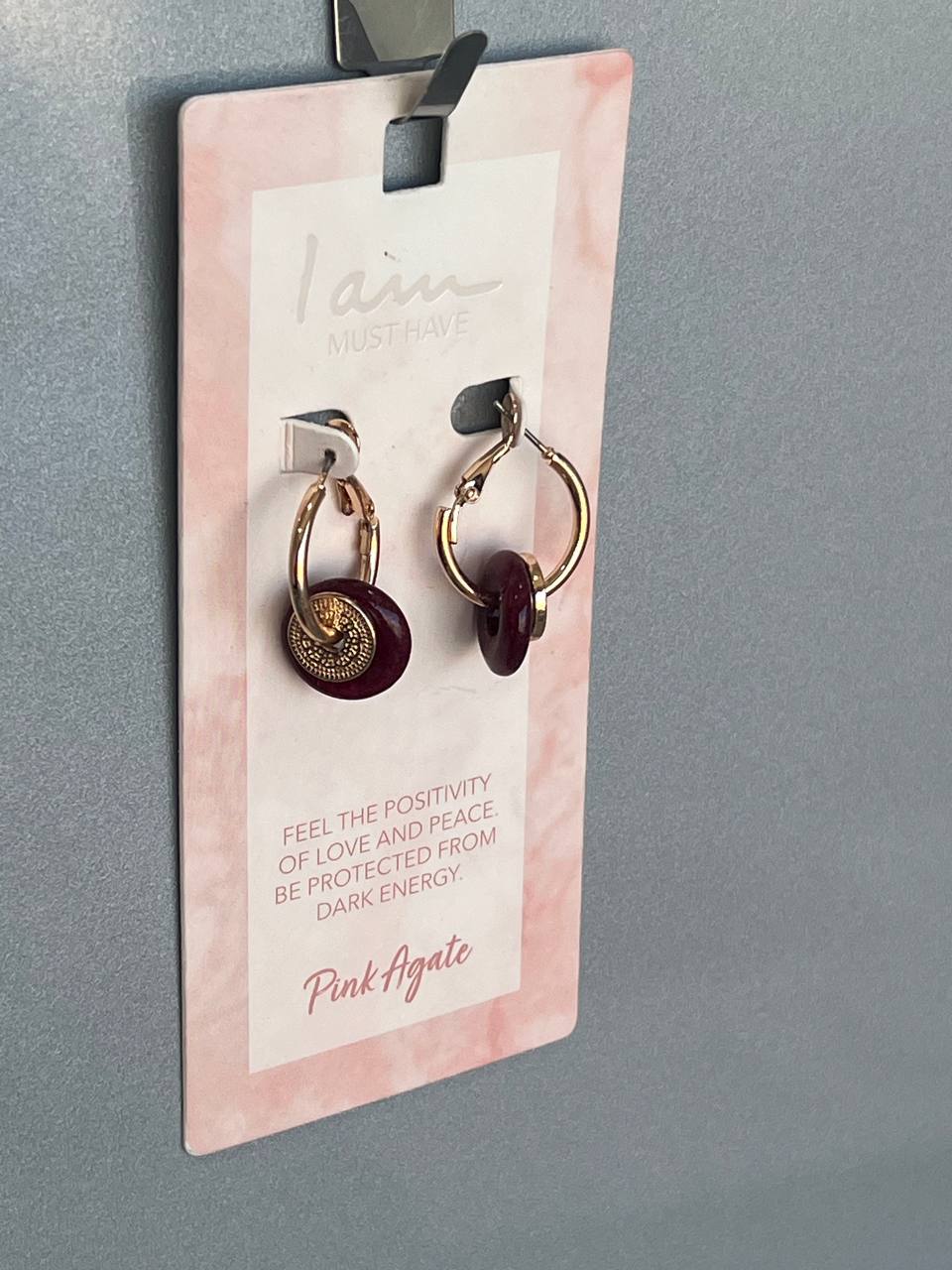گوشواره حلقه ای زنانه با سنگ شرابی آگات - برند I AM
