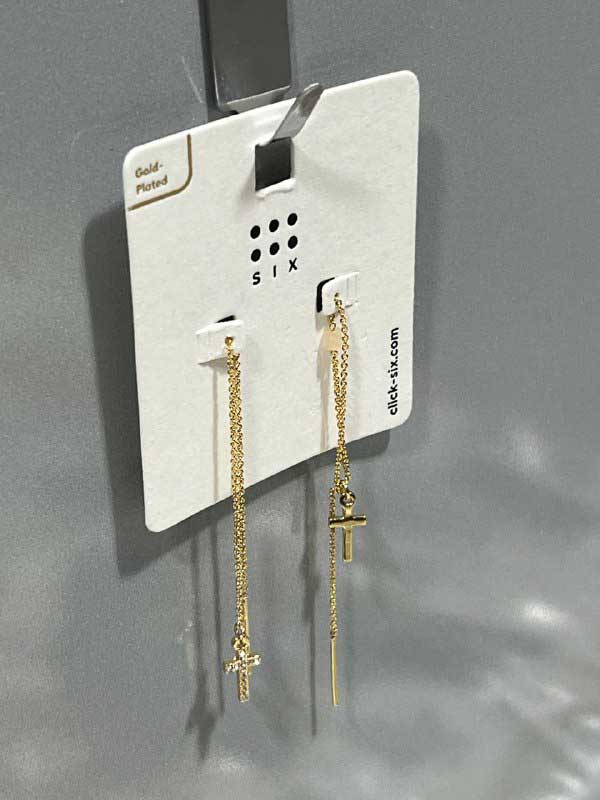این گوشواره صلیبی روکش طلا زیبا از برند محبوب SIX، با طراحی شیک و مدرن، مناسب برای افرادی است که به دنبال زیورآلاتی ساده اما خاص هستند. گوشوارههای زنجیری مدل صلیب و میله از جنس فلز با کیفیت و روکش طلا (Gold-Plated) ساخته شدهاند که درخشش خاصی به آن میبخشد و ظاهری شیک و لوکس ایجاد میکند.