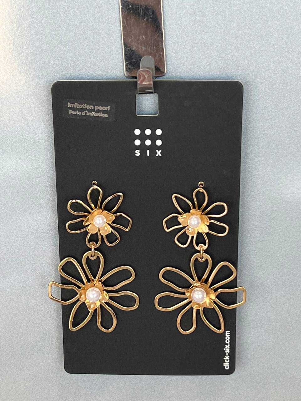 گوشواره گلدار طلایی با مروارید از برند SIX