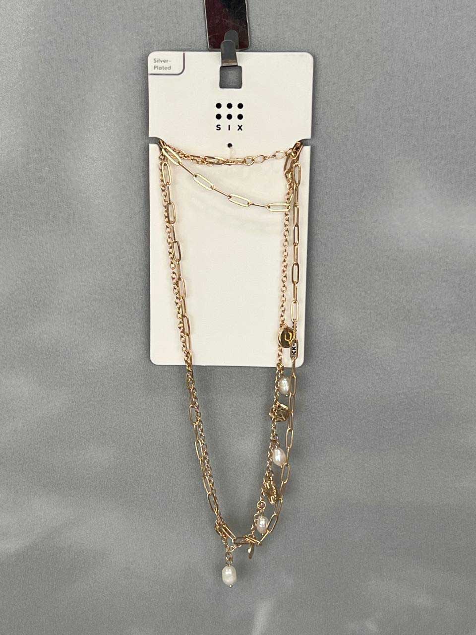 گردنبند با آویز مروارید برند SIX با طراحی زیبا و مدرن، یکی از بهترین انتخابها برای تکمیل استایل روزمره یا رسمی شماست. این گردنبند شامل دو زنجیر درخشان است که از فلز با روکش نقره ساخته شده و جلوهای شیک و خاص به شما میبخشد.